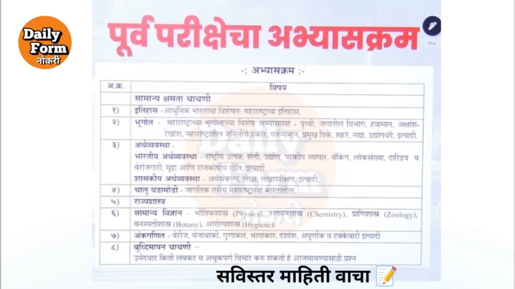 हे सविस्तर माहिती उमेदवारांना देण्यात येत आहे.कारण उमेदवारांनी परीक्षेची तयारी करावी या भरतीच्या जागा लवकरच सुटतील अशी शक्यता आहे .त्यामुळे उमेदवारांना तयारीत राहण्यासाठी ही अधिकृत माहिती देण्यात आलेली आहे. या भरतीचे कोणतेही नोटिफिकेशन जाहीर झालेले नाही हे उमेदवारांनी लक्षात घ्यावे हे फक्त उमेदवारांना परीक्षेची तयारी करण्यासाठी जी आवश्यक माहिती लागते ती माहिती या लेखाद्वारे पुरविण्यात आलेले आहे.